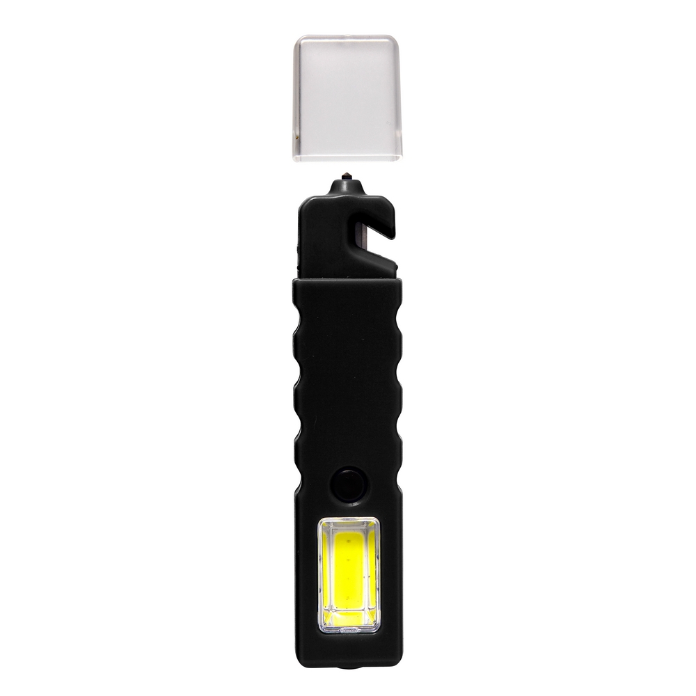 Latarka bezpieczeństwa 4 COB LED, przecinak do pasów, młotek bezpieczeństwa