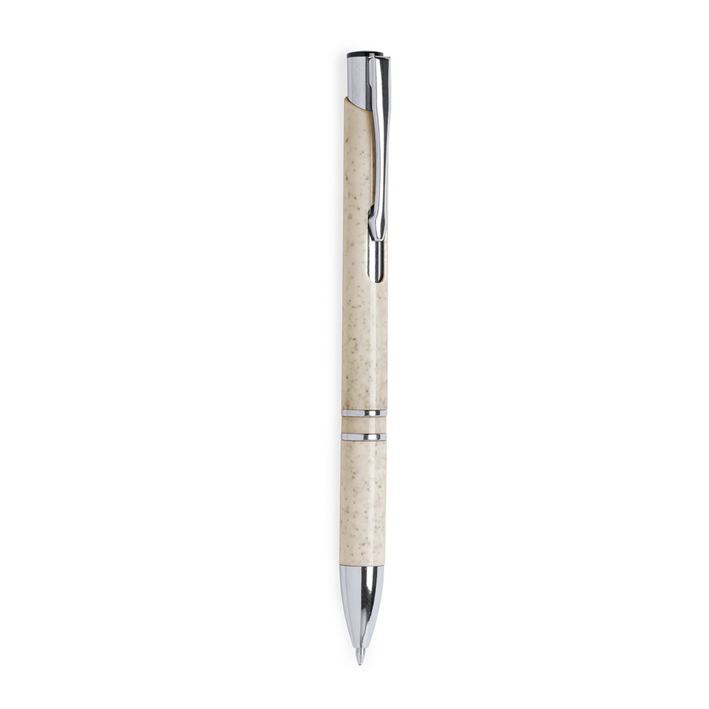 Długopis z włókien słomy pszenicznej, metalowym klipem i srebrnymi elementami