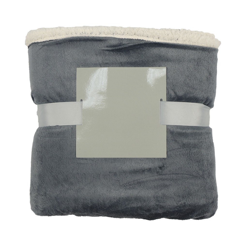 Kolor: szary Materiał: polar typu colar, Sherpa 380 g/m2 Wymiary: 125 x 160 cm